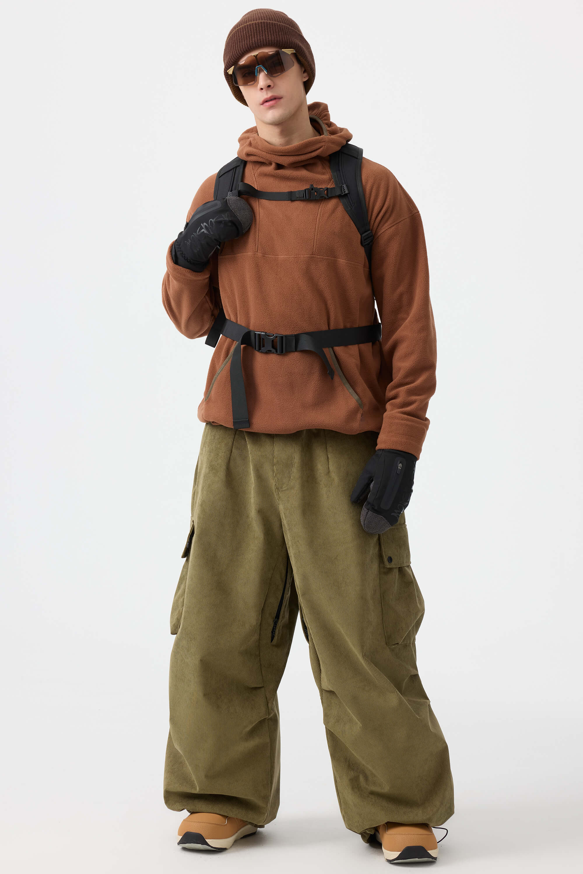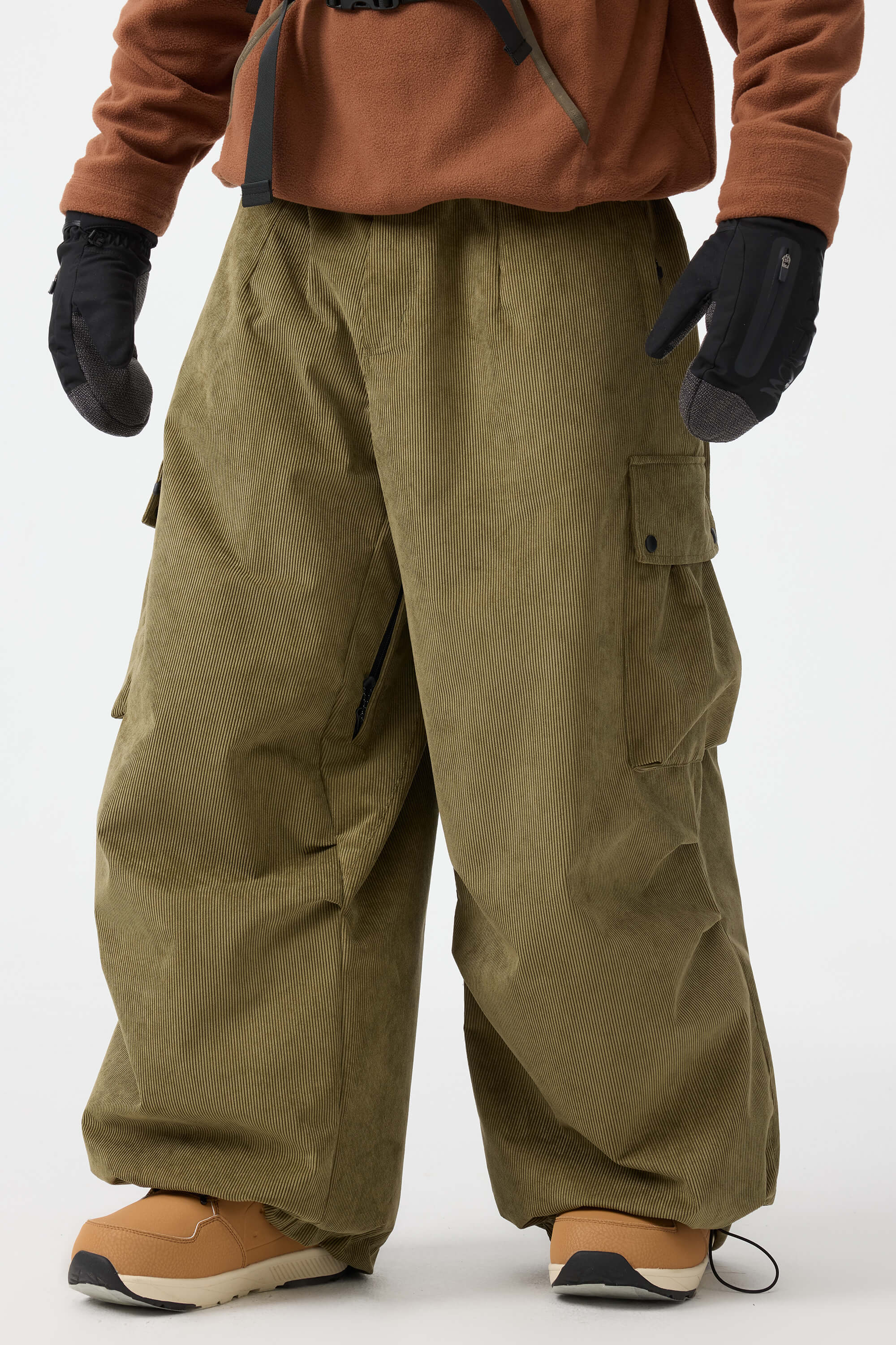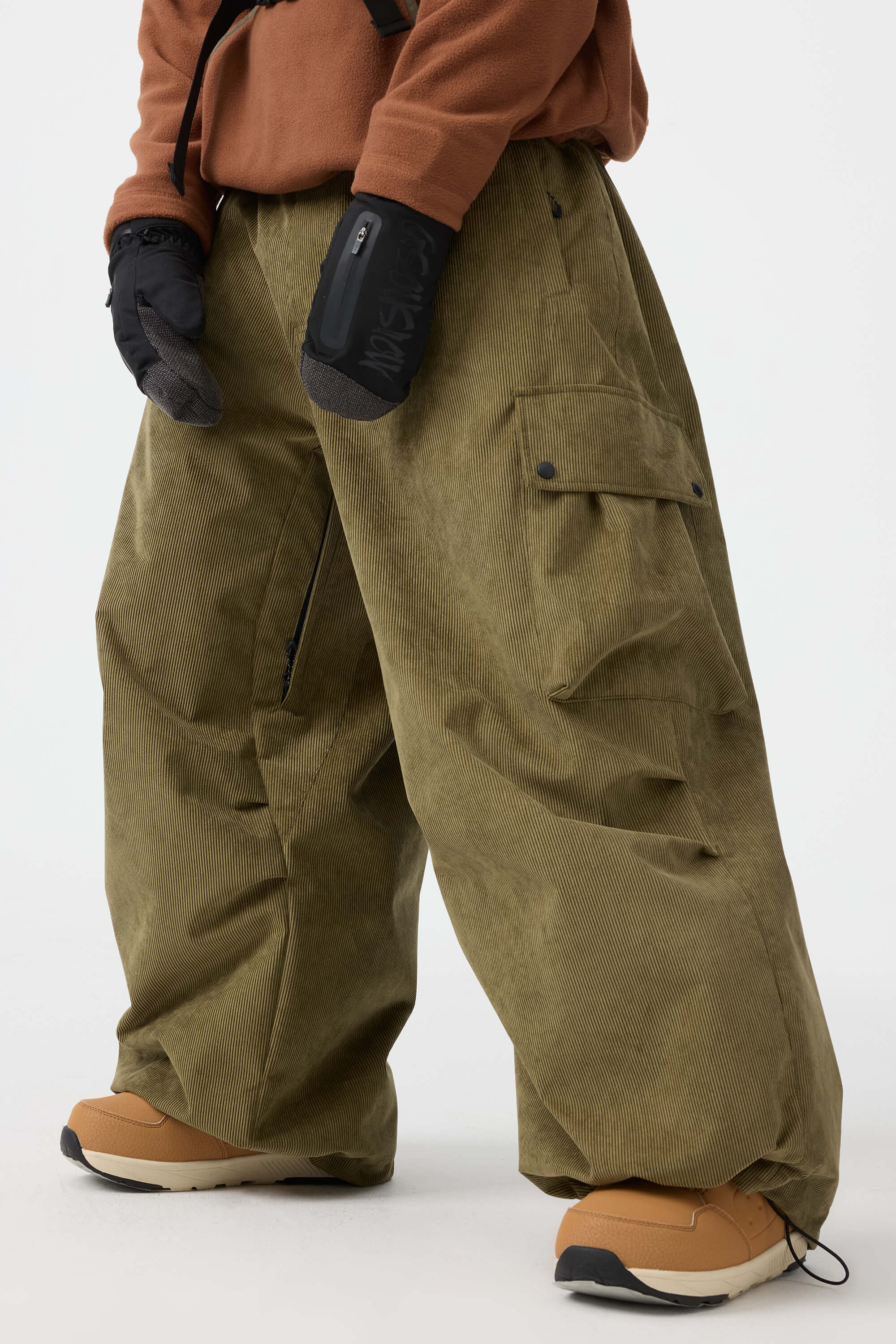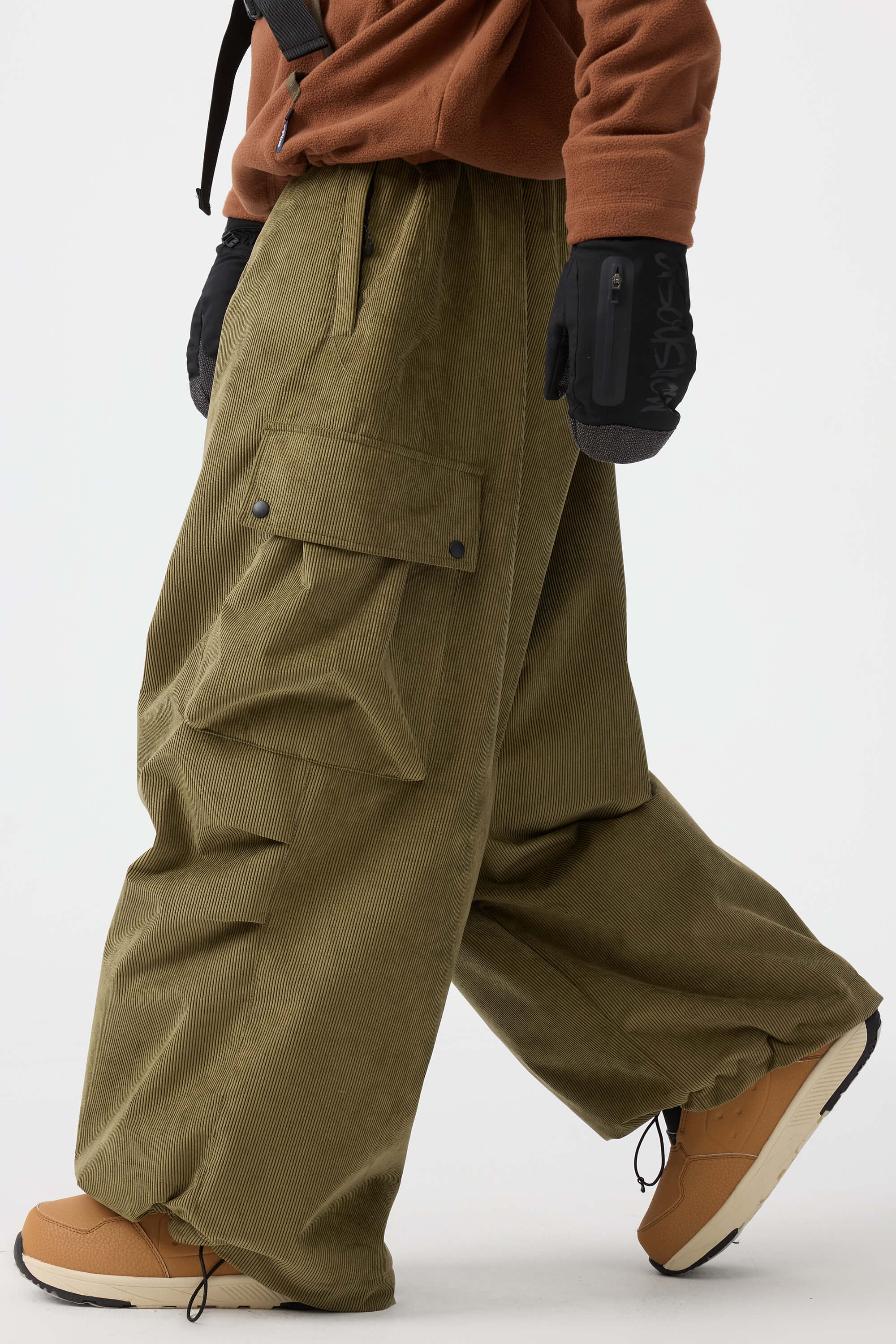 Crafted from unique corduroy fabric, these pants offer a retro style with softness and warmth. Featuring water- and wind-resistant linings at the waistband and cuffs, along with zippered thigh vents for quick heat release, they combine style with excellent protection.